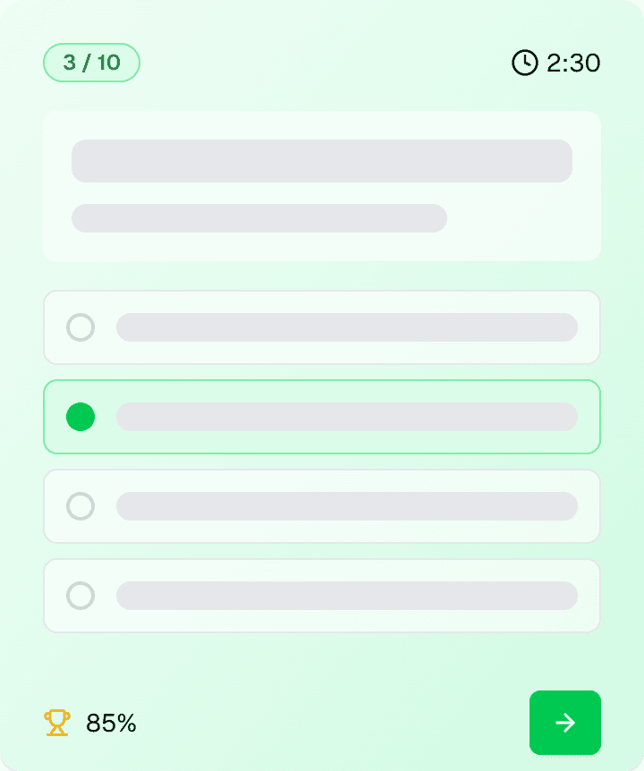 Test yourself instantly with AI-crafted quizzes that adapt to your knowledge level and specific weaknesses